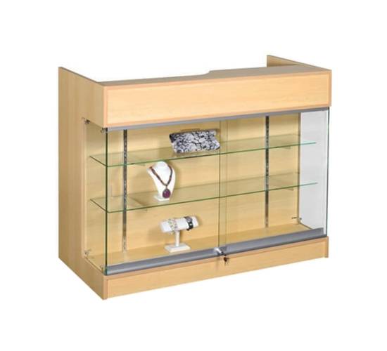 This beautiful register checkout counter on your showroom floor help to place your cash register and have convenient storage space. It can be placed in your retail store on its own, or it can be used together with other display cases.