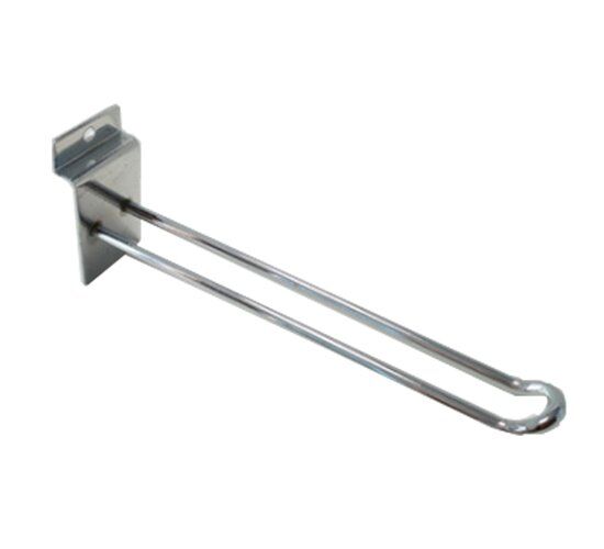 The Chrome Peg Hook for Slatwall will let you maximize your slatwall panels and free standing displays. Merchandise hangs neatly and uniformly. The flexibility of the fixture allows for displaying all types of accessories and small housewares. Additional features include the tubing with an upturn at the tip to discourage product from falling off. An integrated mounting bracket allows for easy installation and stability.