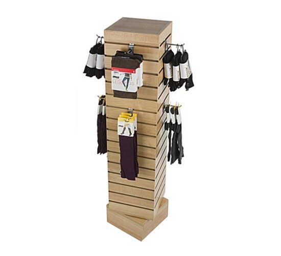 Space-saving and slim design slatwall floor display can present goods from 4 sides. Revolving slatwall stand is a perfect way to display your product, it can be used to display anything from clothing to auto parts.