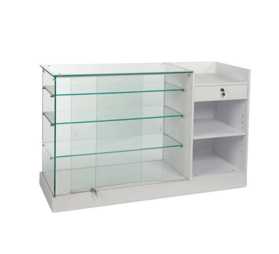 This beautiful register checkout counter on your showroom floor help to place your cash register and have convenient storage space. It can be placed in your retail store on its own, or it can be used together with other display cases.